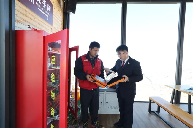 2025年10月16日,甘肃省肃南县检察院干警到巴尔斯雪山景区查看AED配备情况。